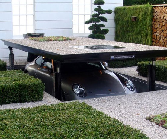 Keep your vehicle stored away in the safest place possible with this sleek underground parking dock.
